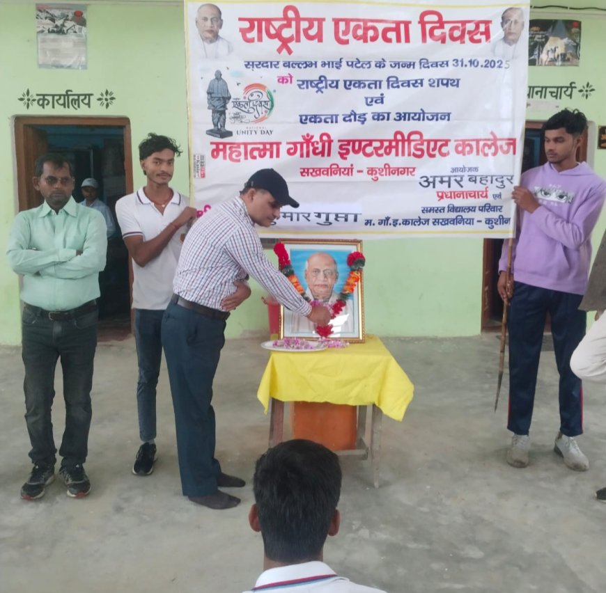 भारत के लौह पुरुष, स्वतंत्र भारत के प्रथम गृहमंत्री एवं उप प्रधानमंत्री सरदार वल्लभभाई पटेल की जयंती पर स्थानीय महात्मा गांधी इंटर कॉलेज के प्रांगण में “राष्ट्रीय एकता दिवस” बड़े उत्साह और गरिमा के साथ मनाया गया। इस अवसर पर विद्यालय परिवार द्वारा देश की एकता, अखंडता और समरसता के प्रतीक पटेल के जीवन से प्रेरणा लेते हुए विभिन्न कार्यक्रमों का आयोजन किया गया।